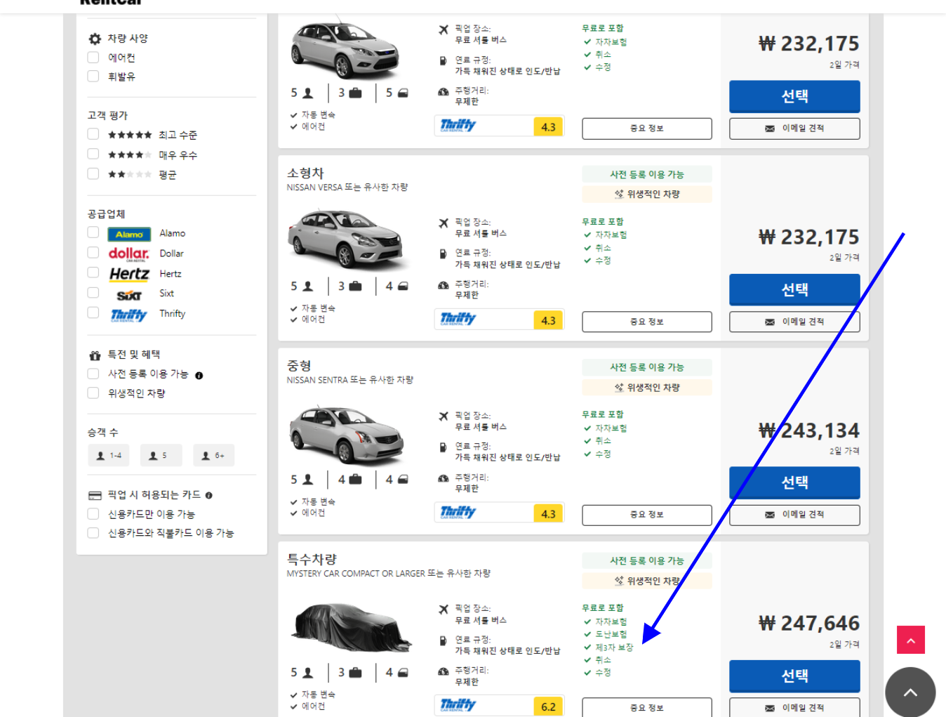 자차/도난/대인/대물 보험 모두 포함! 소형차 & 콤팩트카 2일 24만원이면 충분! (물론 날짜와 시간대 환율에 따라 달라집니다.) 상기 금액은 자차/도난/(제3자보장 = 대인/대물) 포함! (2022년 9월 14일-16일 기준)