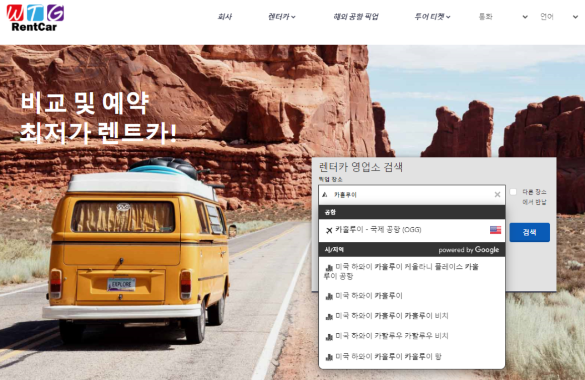 마우이 섬 렌트카 2일 렌터카 가격 궁금한가요? 3초 검색 & 최저가 비교 예약! WTG렌트카!